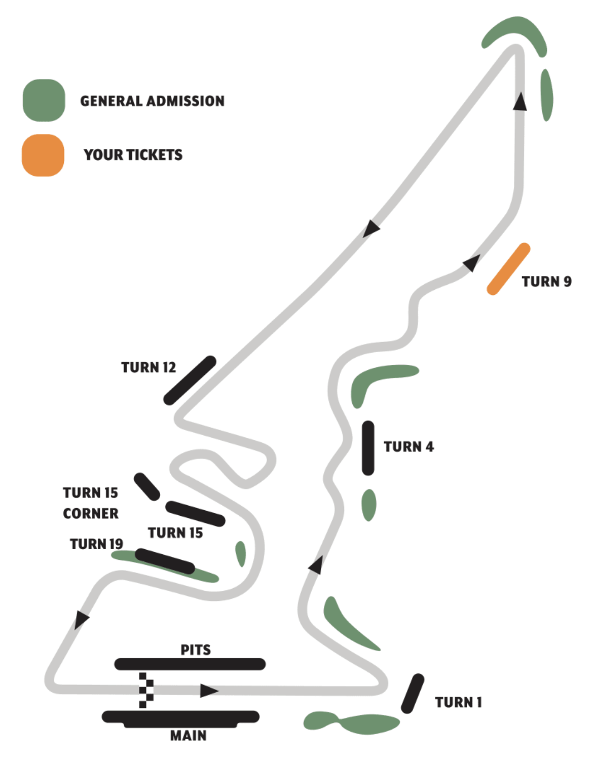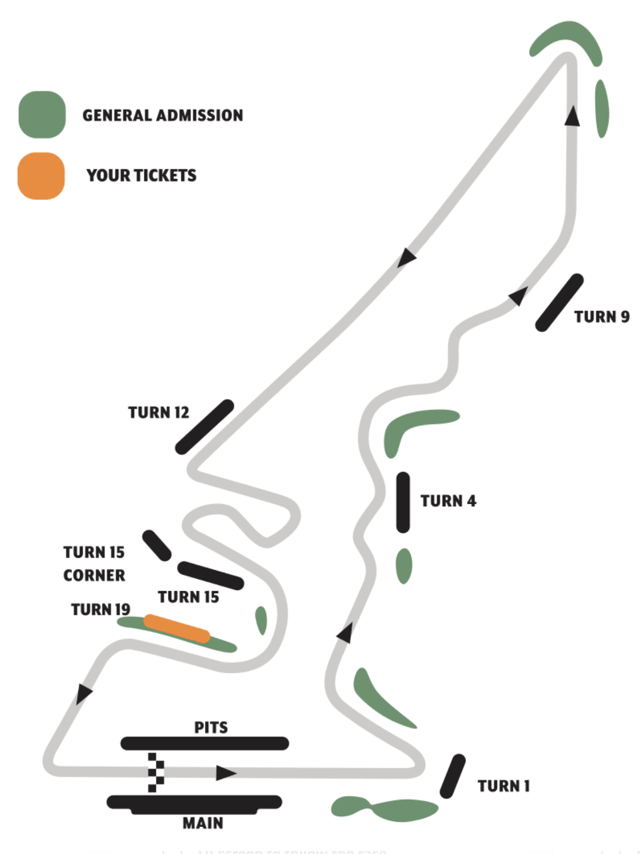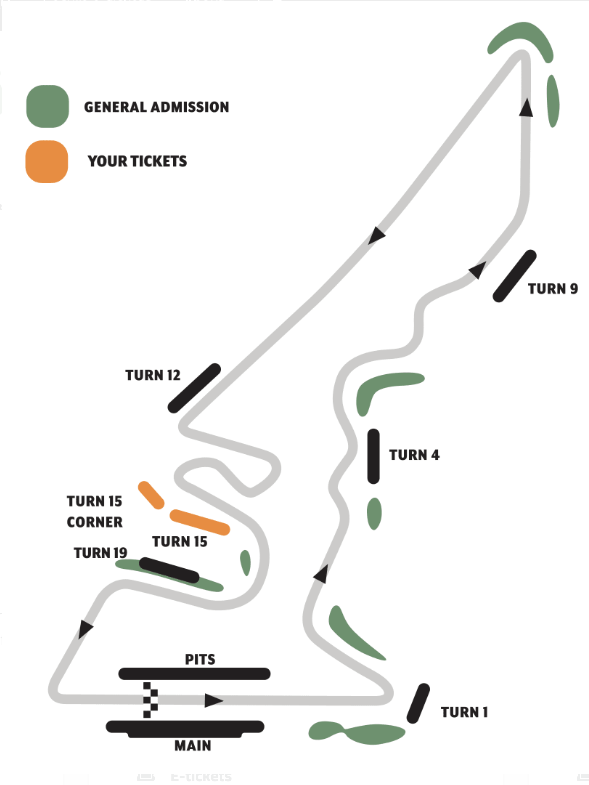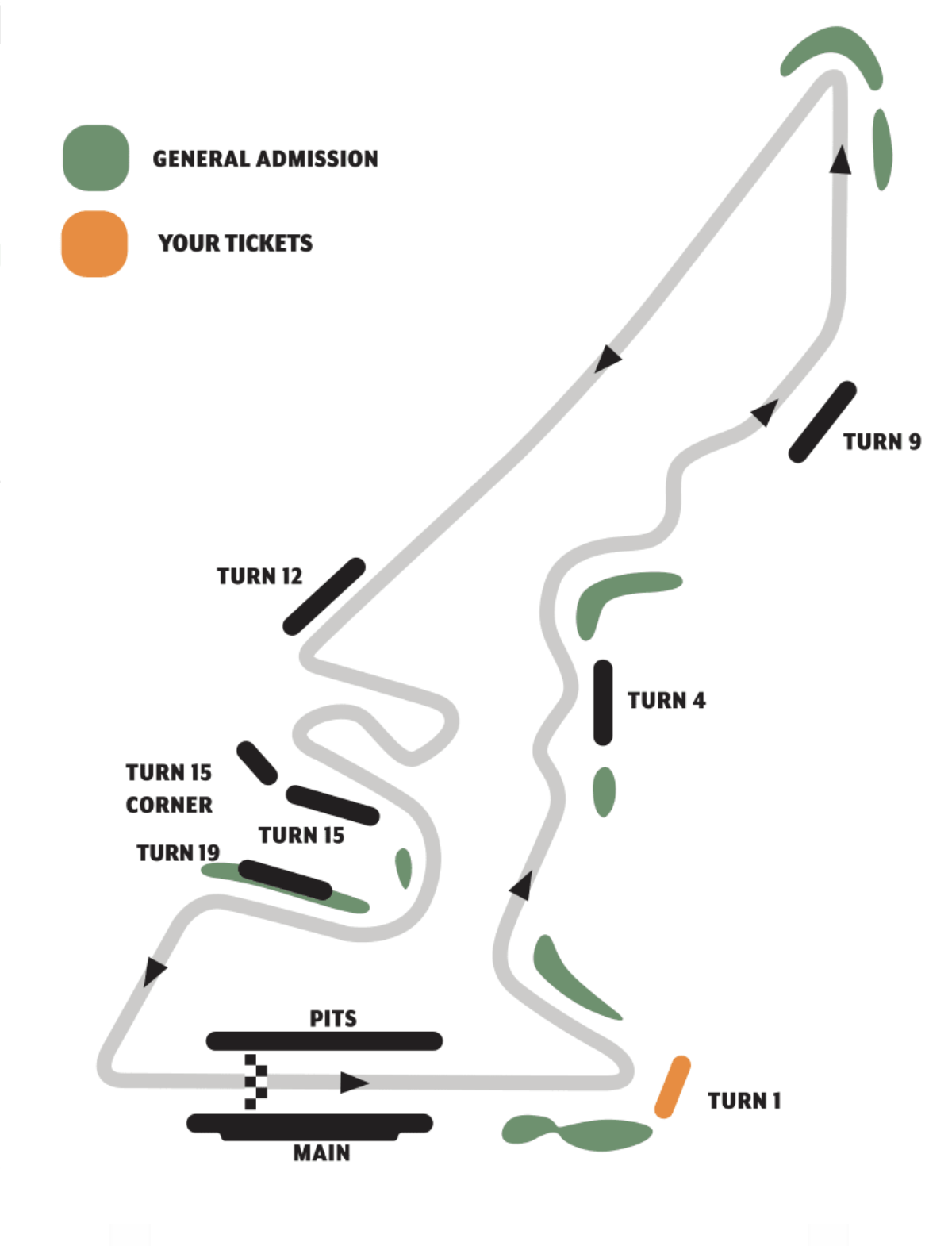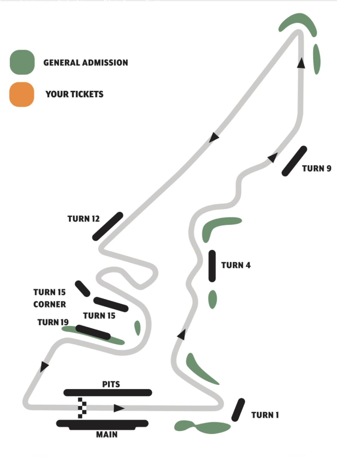 General Admission is the entrance to the track without any numbered seats. As you see in the images and the map you can choose between different areas to watch the race.